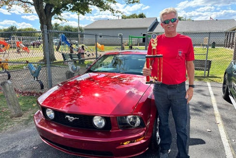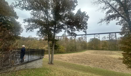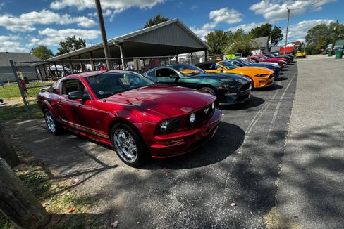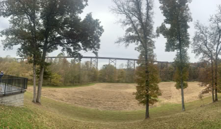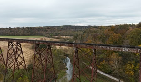 Blog Post - Members of the Hoosier Mustang Club met this past Saturday for our annual Fall Foliage Tour. This year we drove from our meetup point at Master Power Transmission to the Tulip Train trestle in near Bloomfield, IN. It was a very scenic drive that club Treasurer Frank Bayles led us on. We had a few sprinkles along the way, but nothing to spoil the ride. Once we arrived at the trestle we enjoyed taking pictures of this amazing artifact of engineering. Still to this day trains run across this 2,295 foot long trestle. After our stay at the trestle we then hopped back in the ponies and drove to Bedford and ate a large lunch at the buffet at the Golden Corral. A great way to end our year of car cruises and shows for our club.