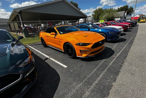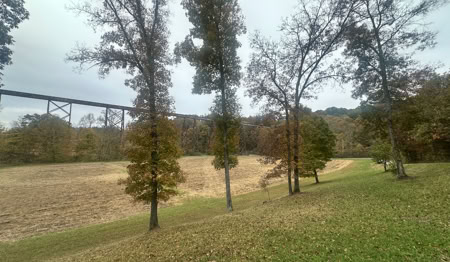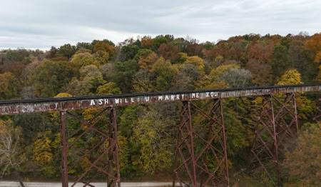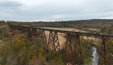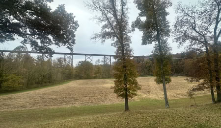 Blog Post - Members of the Hoosier Mustang Club met this past Saturday for our annual Fall Foliage Tour. This year we drove from our meetup point at Master Power Transmission to the Tulip Train trestle in near Bloomfield, IN. It was a very scenic drive that club Treasurer Frank Bayles led us on. We had a few sprinkles along the way, but nothing to spoil the ride. Once we arrived at the trestle we enjoyed taking pictures of this amazing artifact of engineering. Still to this day trains run across this 2,295 foot long trestle. After our stay at the trestle we then hopped back in the ponies and drove to Bedford and ate a large lunch at the buffet at the Golden Corral. A great way to end our year of car cruises and shows for our club.
